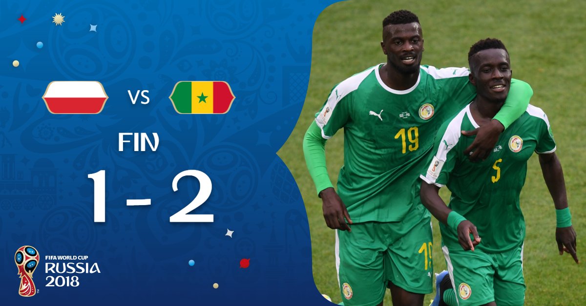 ¡Los Leones de Teranga han vuelto!#SEN firma una sólida victoria ante #POL en su regreso a la Copa Mundial. #POLSEN #Rusia2018 pic.twitter.com/vNmMgZl2T2